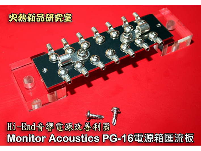 不過,對於大多數的音響迷而言,儘管對Monitor Acoustics全套的最頂尖電源處理極感興趣,而且一般視聽音響室約二、三十萬元的花費,相較於高級音響器材只是零頭,但困難的是並非每位音響迷都能「不顧一切」大興土木;所以,張先生近年亦陸續開發了不少能讓音響玩家更便利使用的電源處理製品,像是今年初我們剖析過、可說是迷你款「Hi-End音響專用電源箱」的Monitor Acoustics MA-1022 Extra音響電源清淨器,最近更推出了可讓用家有效「改良」自家電源箱的「PG-16匯流板」,透過高品質的水線及地線匯流板,取代電源箱內單薄、不利電能超導傳輸並容易干擾的銅製匯流板,以低廉的花費就可讓供電更為純淨順暢,不愧是Hi-End音響電源的又一項改善利器。