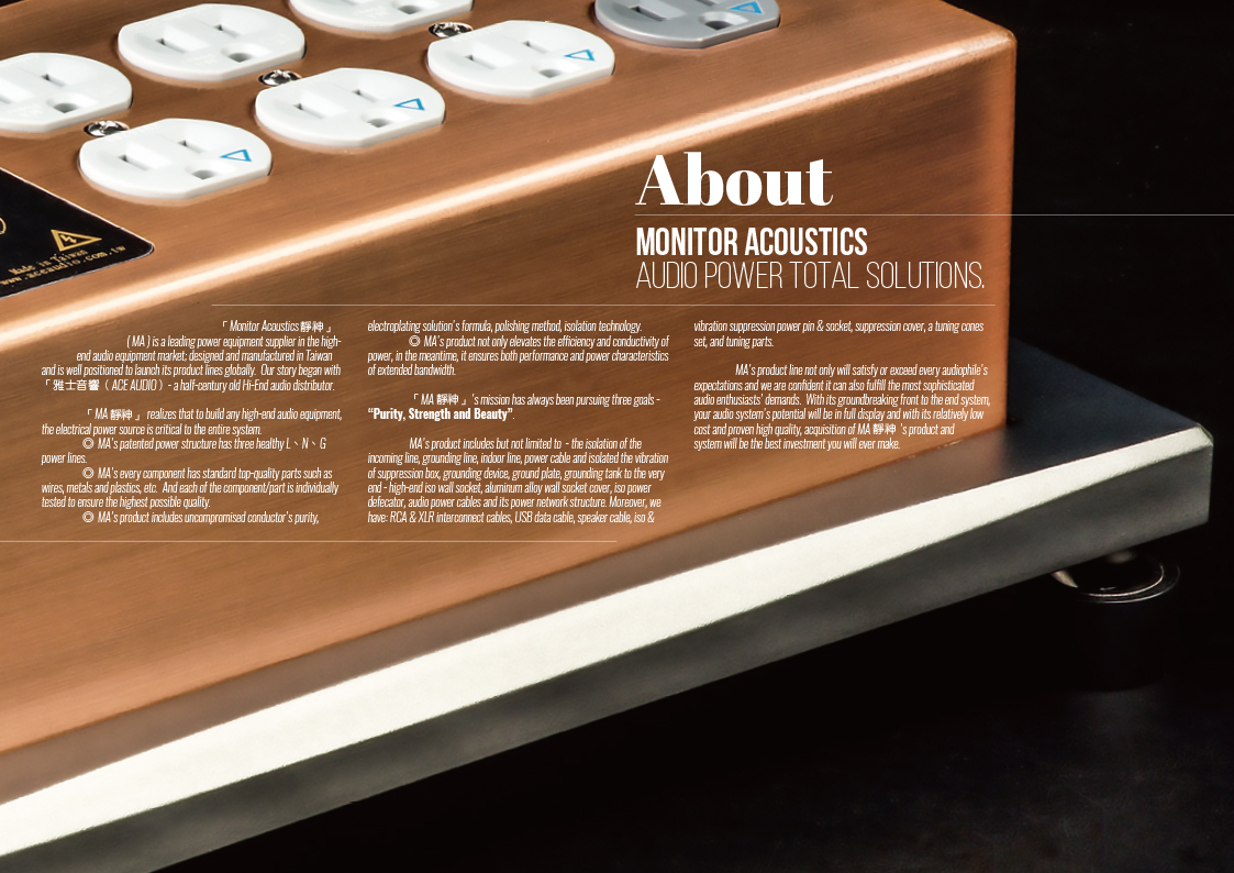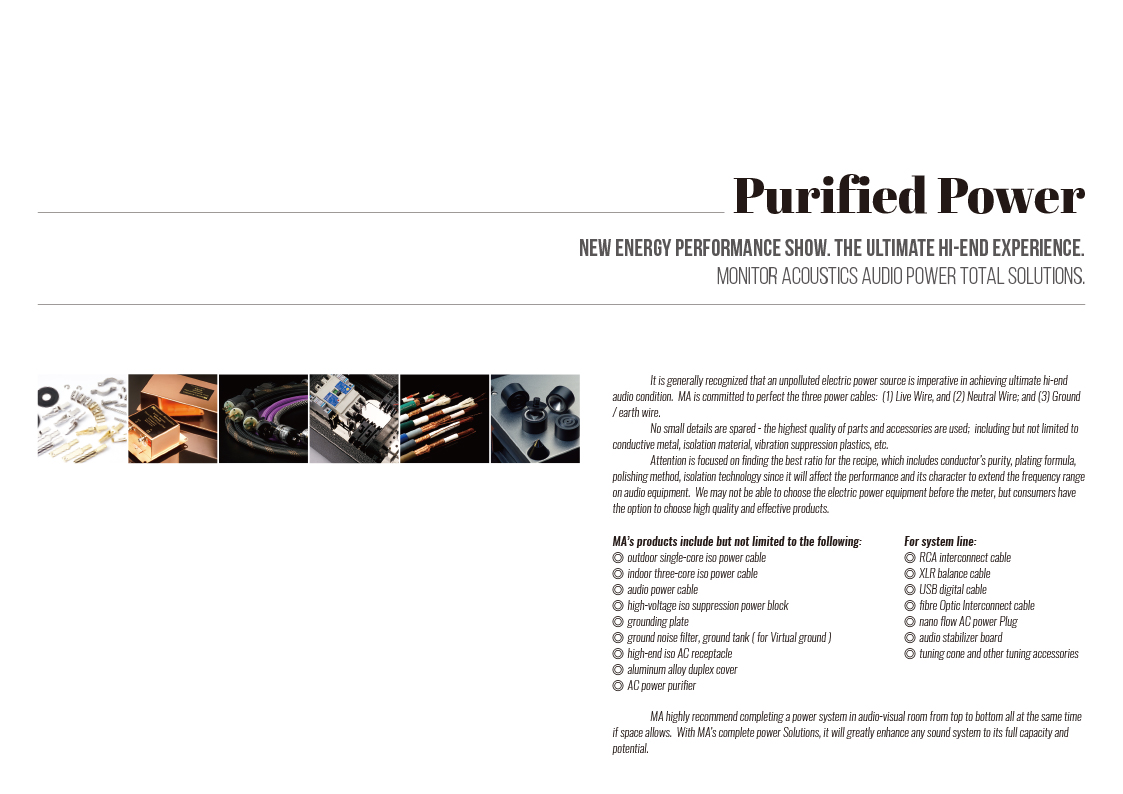 Monitor Acoustics Audio Power Total Solutions. 架構完整的電源系統
