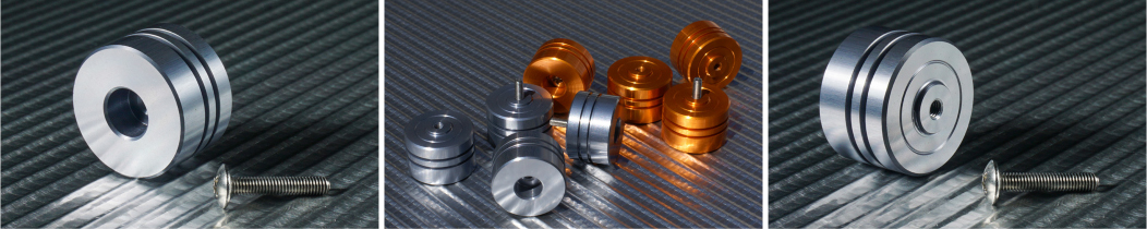 說真的,當初在「MA-2215」推出時,時常被「沒用過的」玩家看不起,嘲笑它「小又不起眼」能有什麼效果,但在我們細心介紹過後,消費者認同、並買回去架上自己的音響系統後,「哇~」聲音真的變更好了,這句話是我們聽見最多的回饋,由於改善效果顯著,買家通常會直接再追加數套,因為這玩意不貴、只要台幣2,250元。 我們推出的最小款抑振腳墊「MA-2215」,針對「底」質不佳的設備,設計出可輕鬆替換的鋁合金抑振腳墊,外表刻意車削出多道溝槽,用以將微振散去,並阻擋共振延伸。此外,MA-2215還備有M3不鏽鋼螺絲,可直接替換掉原廠器材上的腳墊,直接將MA-2215鎖固在設備上,也可利用中心圓槽直接墊在設備下,選出最適合的聲音表現。花小錢就能提升音質,重拾凝聚扎實的好聲音,「MA-2215」絕對是高C/P值的投資。除了音響媒體盛讚外,更有百萬系統的玩家,拿來作為空間調聲之用,可玩性可不單只是墊在器材之下,若能花時間把玩,就更能看見它的厲害之處。