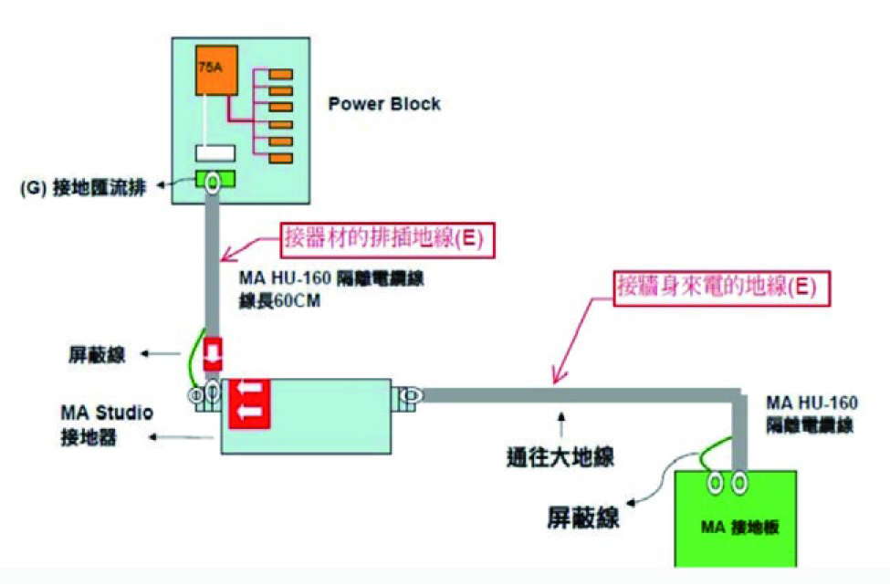 整項基建還有一個重點,就是接地工程。Monitor Acoustics提供兩個級別選擇,第一項,就是將地線接到他們的Studio Pro超級接地器,然後再連接負責漏電保護的接地回路。
