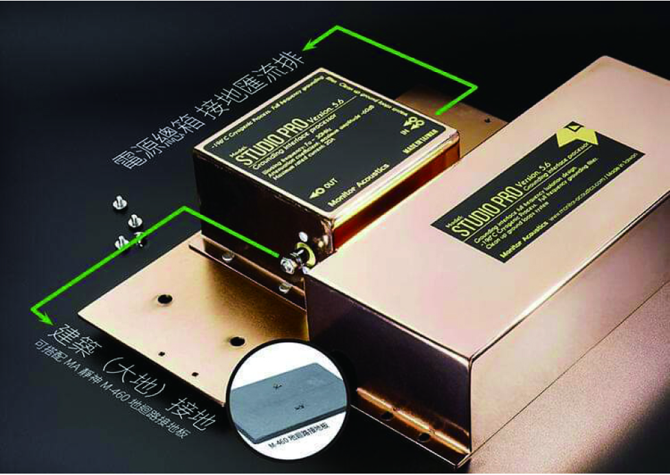 第二項,就是真正「種地」。Monitor Acoustics挑選了與晶圓廠接地線路一樣的M-460地迴路接地板,假如你住獨立屋,就可以將「地」種在室外,真正「接大地」;如果你住大廈,就可以選用他們的MA空心緩衝種地箱,將M-460地迴路接地板放進去,然後再混合泥土、礦物、水等特別比例的物質組合,模擬接大地效果。