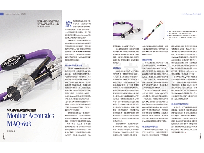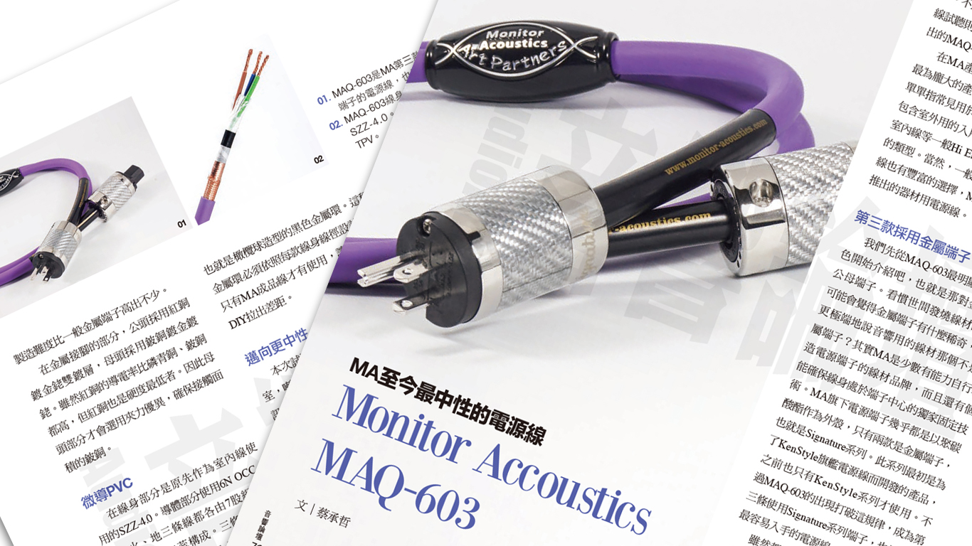 嚴格說起來MAQ-603並不是初次亮相,早在本刊414期在設計電源線專題時MAQ-603便搶先曝光,成為專題介紹器材之一。不過專題畢竟有其限制,本次的極線試聽則是針對Monitor Accoustics新推出的MAQ-603較為全面的介紹。