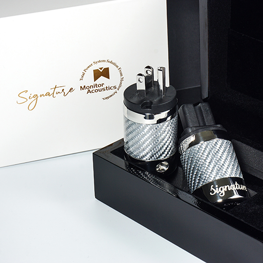 我們先從MAQ-603最明顯可見的特色開始介紹吧,也就是那對金屬製的公母端子。看慣世間發燒線材的讀者可能會覺得金屬端子有什麼稀奇,或者更極端地說音響用的線材那個不是金屬端子?其實MA是少數有能力自行製造電源端子的線材品牌,而且還有個能確保線身處於端子中心的獨家固定技術。MA旗下電源端子幾乎都是以聚碳酸酯作為外殼,只有兩款是金屬端子,也就是Signature系列。此系列最初是為了KenStyle旗艦電源線而開發的產品,之前也只有KenStyle系列才使用。不過MAQ-603的出現打破這規律,成為第三條使用Signature系列端子,也是其中最容易入手的電源線。