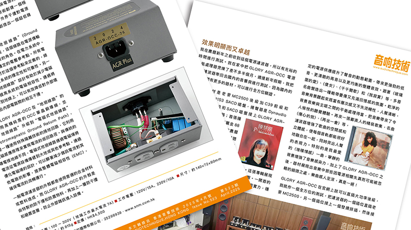 在您的音頻設置中加入GLORY AGR-OCC電源濾波器,真的可以顯著改善音質,保護您在高端音頻設備上的投資,並確保更加一致和愉快的聆聽體驗。無論你是一個發燒友,還是僅僅是一個欣賞美妙聲音的人,一個高品質的電源淨能器能給你的音樂體驗帶來有意義的改變,少投資帶來高增益,值!( 來自香港 音响技術-e試聽心得 的試聽報導 )