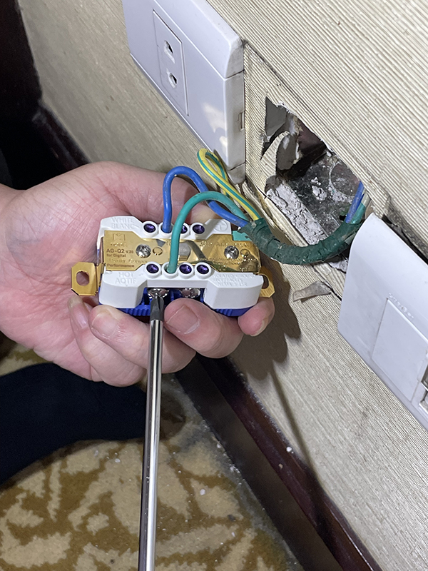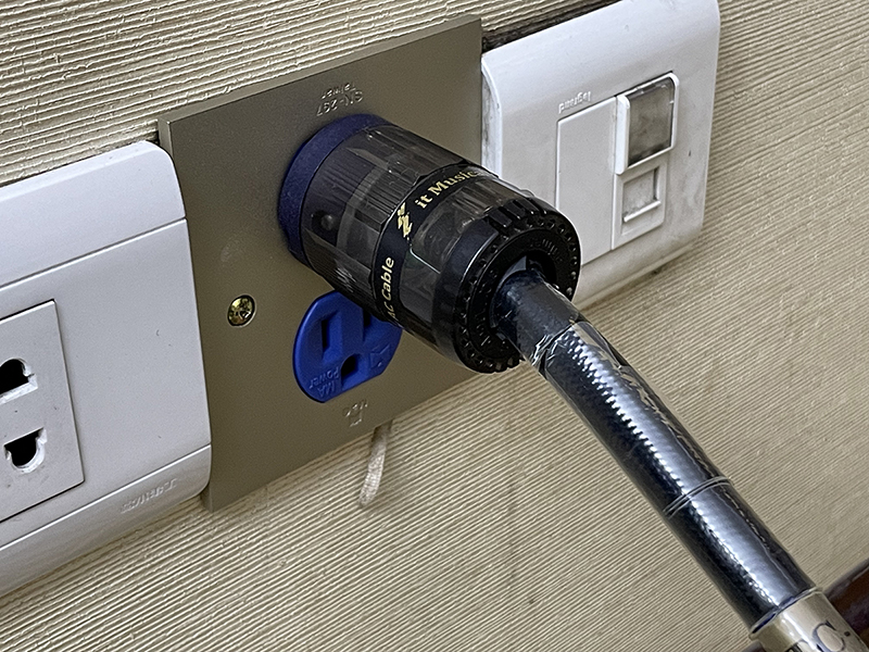 進場完的第一要務就是換上自家的牆壁插,過去是用「IG AG-Q」,這次則是最新推出的「IG AG-Q2」,雖然型號只差了「2」,但裡裡外外已是不同過去的全新設計,這款凝鑄近十年的精華、經歷無數次微調修飾,與長時間的熟成驗證,確認聲音表現符合預設的高標準,集電能與聲學優勢,擁高電流、高性能、高平衡等…特性,導電端子採百年美製煉銅廠訂製鈹銅合金,以無感磁、無應力、-196°C超冷處理元件,加上五爪式端點夾具設計、淨電流量子Quantum深層電鍍技術、超越NEMA美國電氣設備標準,讓接觸更加緊密、更利於電導傳輸。全新登場的「裏外治振圖騰結構與入線孔調音柱」,有效改善腔室磁場控制,創造最佳過電空間,MA不斷精進、終成不凡性能, 以超乎想像的質量提升,讓您用上一次、終生受用。