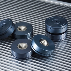 我們知道這個狀況,針對書架型揚聲器、前級、DAC、轉盤、綜擴……等中小型設備,推出MA-3512B腳墊,結構中心採用高剛性碳鋼材質,外圈則是以複合金鋁削銑成型,並在側面與底部削出多道淺溝,讓諧振消散更加有效率,接著經過多道細緻打磨後,最後在處以一道表面強化的陽極處理。淺凹槽設計的MA-3512B,主要針對輕量級器材做使用,搭配對應的「MA-3512A」角錐,儘量將重心放低、將諧振導散,讓聲音拓展開來,重拾音樂裡的細節,高低頻段同時向兩端更加延伸開來,如此就能聽見更寬鬆自在的舒適之音。玩家在使用這類腳釘墊時,將會發現聲音會立刻變得鮮活生動,音場與細節立刻開展出來,而在片刻之後,裝載時的接觸點瞬間應力消除後,聲音表現將會更進一步的提升。