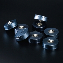 為了達成快速消除環境諧震的影響,器材與檯面之間必定有一個連結,而這個連結的墊面體,就是影響聲音細節的關鍵,若是沒有小心處理,就可能會在環境的共鳴諧震下,不斷地交互作用,導致微抖動不斷地霧化了原有的音頻,進一步來說,就是會弱化音樂的聚焦能力、紋理、音場景深等等……,最終導致音樂無法釋放出原有的活生感,導致聲音越聽越發煩躁。玩音響、聽音樂,最重要就是要聽起來是舒服的、愉快的,而不是刺激、生硬,或是了無生氣。我們發現貼在地上、架上的「腳」很重要,一般原廠音響只會做到四平八穩、不衰聲視為及格標準,不太會在乎「腳」是否有做好。若是遇上標準要求低的「肉腳」,就可以預期到發出來的聲音,應該就會是虛軟無力、混糊不明,而會發出這樣聲音,不全是音響本身的問題,也許是供電的「電源不夠純淨」或是「腳」沒站好了。