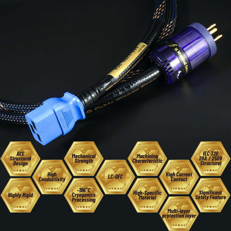 Audiophiles today are more discerning than ever—demanding not only exceptional equipment, but also superior power delivery. For high-performance systems using the rarer IEC C19 inlet, the MA-1200 provides an ideal solution: a fully shielded, high-purity 20A audio-grade power cable that strikes the perfect balance between efficiency, purity, and affordability.