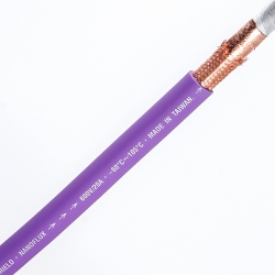 線身:八道介電隔離防護(三色HDPE、抑振棉線條、兩層絕緣紙、微導PVC、科技銅皮、OFC銅屏蔽網、紫色TPV)