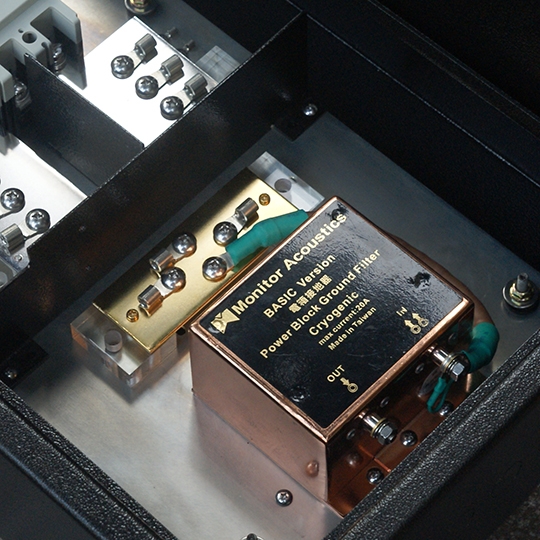 MA靜神的隔離抑振電箱,內外部件全都採用訂製組件,箱體採用厚鐵鍍鋅、並覆以特殊高溫烤漆處理,給予隔磁、抑振、穩固的基石,內部斷路器採用台灣大廠的「客製」無熔絲閘,從外觀看來與一般市售相仿,常被質疑為何不用國外知名的品牌,但這樣的崇洋心結,不僅看低台廠,也完全低估了MA靜神的嚴苛標準;與我們合作的台廠,其技術與性能都可依需求要求、且支援度高,再複雜的工序都能幫忙搞定,並強化高規結構製程封裝,如無熔絲的核心介電,在持續不斷的大電流經過絕緣材時,能夠完全隔絕電磁輻射與弱電的干擾,確保高介電值、耐大電流電壓的高效性能,完整傳輸極大化的電能頻寬,這些都是現成市售品所無法相比的。MA靜神歷經長時間的開發研究,專注於精確的音響電源這領域,將別人做不到的極寬頻,透過「MA靜神電源系統」重新展現,這是市面上常見的拼裝電源所到達不了的,而MA靜神堅持關鍵的每個環節都不能錯放,最終才能擁有豐潤、飽滿、充沛、純淨的寬頻電能。此外,L相(火線)、N相(水線)的分閘不用一般傳統的電源線,採用特別訂製的高階銅板,經CNC切型後、處以細緻打磨,最後鍍上電子級貴金屬,保持最佳的金屬物理條件,其耐高電壓、高電流、高速傳導的特性,與半永久性的穩定條件,展現出極為優異的電源傳輸性能,表現出不凡的全方位導電能力。