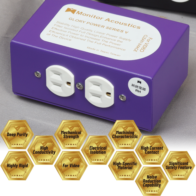 註:市面上有一部分的視聽產品,常為了降低製造成本,便會在初級電源處理時就偷工減料、便宜行事,這往往會是影響著最終呈現結果的一大主因,「MA靜神電源清淨器」的推出,就是要將這一類的問題傷害降至最低,一方面要將電源淨化,濾除雜訊、突波、電磁等多餘的干擾源,這些都是玩家不可不注意的。*Note: Why Power Matters in Video:Many AV products on the market compromise internal power filtering to cut costs—often sacrificing image quality in the process. Monitor Acoustics developed the GLORY Series to solve this issue at the source. By filtering out unwanted power noise before it reaches your gear, the GLORY V lets your system achieve its full visual potential—quietly, efficiently, and effortlessly.