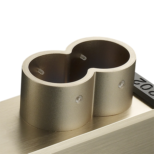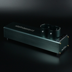 特殊造型的鋁合金隔離外殼,上頭搭載一組IG AG-Q電源插座,提供兩個電源插孔,提供最佳電源能量,減少器材間的相互干擾。